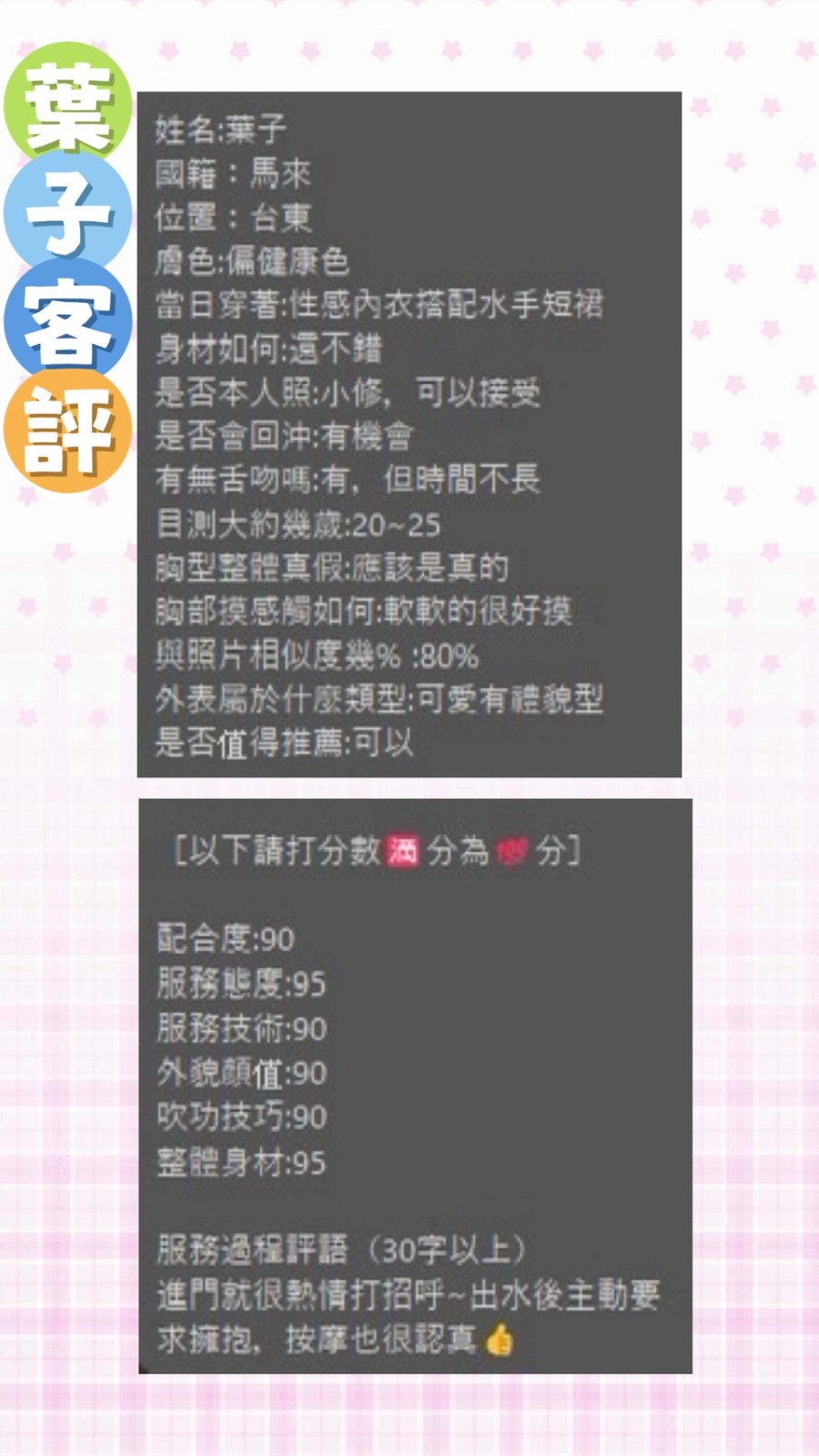 顏質好.身材好.態度好.配合度高    Review by 朱**