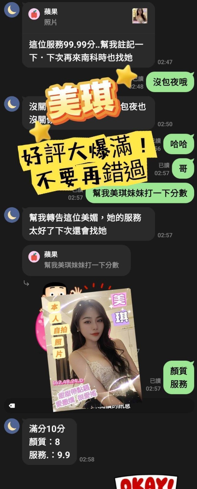 外表活潑互動非常好,很主動又健談    Review by 吳**